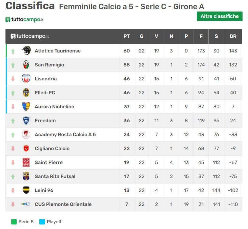 Classifica Femminile Calcio a 5 - Serie C - Girone A Stagione 2024-2025